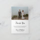 Remerciez vos invités d'avoir célébré avec vous avec cette belle carte de remerciement de mariage. Ajoutez votre photo préférée à l'intérieur pour personnaliser le design. Il y a également un espace à l'intérieur pour un message et vos noms. Si vous préférez écrire à la main l'un de ces éléments, veuillez simplement supprimer le texte du champ correspondant à l'aide du personnalisateur.