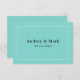 Les cartes à billets personnalisées à plat présentent un design chic et sophistiqué ainsi qu'un monogramme du nom d'une mariée et d'un marié, avec de l'espace sur le dos pour un message manuscrit. Aqua / robin's oeuf bleu, noir et blanc.