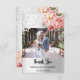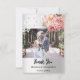 Un carte de remerciements moderne et élégant non photo. Un arrière - plan faux argenté. Décoré de roses roses roses rousses, fleurs florales et dentelle blanche Sur le devant du texte : Merci Retour : Modèle pour Votre remerciement note et noms.