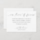 Donner des dons plutôt que des faveurs pour votre mariage ? Faites savoir à vos invités qu'un don a été fait pour eux avec ces belles cartes de rose poussiéreuses, mauve et de couronne gris poussiéreux. Le design comprend une douce aquarelle peinte sur le dos en rose, mauve et vert sauge poussiéreux. L'avant est doté d'un script de calligraphie moderne et gonflable.