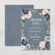 Carte de remerciement de mariage géométrique floral bleu poussiéreux présentant des bouquets élégants de bleu poussiéreux / bleu marine, blanc, rose pêche et feuilles d'eucalyptus vert sauge et cadre géométrique neutre à paillettes élégant. Veuillez me contacter pour toute aide à la personnalisation ou si vous avez besoin d'un autre produit avec ce design.