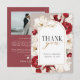 Carte De Remerciements Mariage floral blanc et rouge rubis avec photo