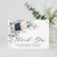 Carte De Remerciements Mariage Floral Greenery Géométrique Rose Navy