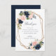 Un joli design floral avec des fleurs d'aquarelle marine et blush et un cadre géométrique. Le texte et les couleurs peuvent être personnalisés.