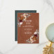 Carte de remerciement de mariage thème floral terreux élégant rouge burgundy, terracotta, orange avec un bouquet élégant de Marsala, roses couleur terracotta, pivoines et feuilles d'eucalyptus vert sauge. Veuillez me contacter pour toute aide de personnalisation ou si vous avez besoin d'un autre produit avec ce design.
