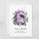 Carte de remerciement de mariage gothique floral aquarelle aux accents de lavande violette, noir et argent faux pailleté conçue pour être rapidement et facilement personnalisée aux spécificités de votre événement.