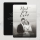 Ce carte de remerciements noir et blanc moderne et chic de mariage comporte une pleine photo de soutirage, un style à la mode et élégant de typographie et le manuscrit blanc du "meilleur jour de calligraphie jamais" dans une disposition de conception simple mais élégante.