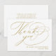 Envoyez à vos invités de mariage une carte de remerciement minimaliste personnalisée pour les remercier. Ce design simple comporte une belle écriture manuscrite en or qui dit "Merci" ainsi que votre nom pour personnaliser. Le verso de la carte contient un message personnalisé ainsi que votre signature. Créé par Susan Coffey.