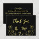 Unique simple carte de remerciements mariage avec des fleurs dorées romantiques et élégantes sur arrière - plan noir POUR PLUS DE PRODUITS CORRESPONDANTS cliquez sur la collection ci-dessus ou contactez-moi.