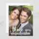 Un petit papier abordable de 4,5 po x 5,6 po présente votre photo, les mots Merci et vos noms en lettres chic avec votre note de remerciement au dos. Papier de 110 livres et 3 tailles au choix. **LES ENVELOPPES BLANCHES SONT FACULTATIVES SUR LA PAGE DE COMMANDE. Assurez-vous de vérifier votre commande deux fois avant de l'ajouter à votre panier, car ce que vous voyez à l'écran est ce qui sera imprimé. Le service de design en direct peut vous aider à mettre en page votre design si nécessaire.