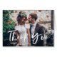 Carte de remerciements de Mariage photo avec pinceau blanc. Carte de remerciements photo élégante en lettres de la main avec un magnifique script de brosse avec couleur mauve rose pour l'intérieur de la carte. Ce carte de remerciements photo sera parfait pour une variété d'événements tels que les mariages et les diplômes. Personnalisez en ajoutant vos photos horizontales préférées, en changeant la couleur intérieure et en ajoutant vos détails.