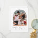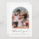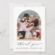 Carte de remerciements mariage minimal pour les jeunes mariés avec votre photo dans un cadre moderne voûté, "merci" dans un script élégant et votre nom et votre date mariage Mr & Mrs dans une simple typographie. Au contraire, vous pouvez personnaliser un message de remerciement et ajouter vos prénoms comme signature.