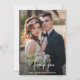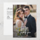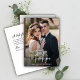 Un carte de remerciements mariage avec une photo de bord à bord du couple. Avant de la carte inclut une simple déclaration de remerciement et les noms combinés du couple. Le dos présente un message simple et chaleureux, mêlant écriture et typographie minimaliste. Le design est entièrement personnalisable. Contactez-nous pour obtenir de l'aide pour personnaliser ou customiser vos besoins. Nous sommes ici pour aider !
