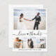 Budget, "Amour et Merci" Script Lettré à la main Coeur élégant, minimaliste Mariage Photo Collage Merci abordable Carte mince en noir et blanc. Modèle simple mignon carte mariage avec quatre (4) photo sur le devant et une photo sur le côté arrière. Avec le texte "Amour et merci" dans une jolie main lettré en texte de typographie de queue de swash police. Ajoutez votre nom et un message de remerciement.