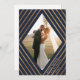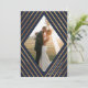 Ces belles cartes plates en Merci mariage sont dotées de bandes de papier doré fantaisie, créant un cadre géométrique en forme de losange autour de votre photo. La couleur arrière - plan est bleu marine foncé. Les modèles de texte sont inclus au verso pour une personnalisation plus poussée.