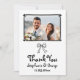 Carte de remerciements de mariage griffé noir et blanc dessiné à la main dans le style français rétro. Cette faire-part de mariage présente la photo du couple dans un cadre de charme dessiné à la main avec des coeurs aux coins et un arc rehaussé d'une police manuscrite. Le message de "Merci" du couple est à l'arrière avec la voiture des jeunes mariés.