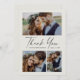 Script 3 photo mariage élégant élégant carte de remerciements moderne élégant. Partie d'une collection mariage. Le dos comprend un message de remerciement que vous pouvez personnaliser pour chaque invité ou supprimer si vous préférez écrire votre remerciement à la main. Cliquez sur le bouton Modifier pour customiser.