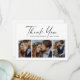 Script 3 photo mariage élégant élégant carte de remerciements moderne élégant. Partie d'une collection de mariages.Le dos comprend un message de remerciement que vous pouvez personnaliser pour chaque invité ou supprimer si vous préférez écrire votre remerciement à la main. Cliquez sur le bouton Modifier pour customiser.