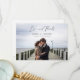 Express votre gratitude avec notre Carte de remerciements de Mariage photo moderne et élégant. Ce design chic à double face est doté d'élégantes calligraphies manuscrites et d'une belle toile de fond océanique, idéale pour un mariage.