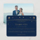 Mystical Chic Blue Gold Star Moon Celestial Space Photo Mariage Remerciements Les cartes présentent le soleil, la lune et les étoiles avec un cadre doré sur un arrière - plan bleu marine foncé. Personnalisez en modifiant le texte dans les zones de texte fournies et en ajoutant votre photo préférée au verso. CONSEIL PHOTO : centre votre photo avant de la télécharger sur Zazzle. Conçu pour vous par ©Evco Studio www.zazzle.com/store/evcostudio