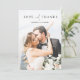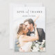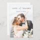 Ce modèle de mariage photo simple et chic présente un design élégant, minimaliste et moderne. La forme par défaut est les angles arrondis standard, mais les angles arrondis fonctionnent aussi merveilleusement avec ce design, alors essayez les deux regards et voyez lequel vous attrape! L'avant présente votre photo préférée, vos prénoms et un message 'LOVE and THANKS' transmis avec un mélange frappant de deux polices distinctes, avec 'and' dans un script léger et fluide entre les deux autres mots, qui sont en coque supérieur avec un look formel audacieux et net. La partie "AMOUR et MERCI" du design ne peut pas être modifiée. Lorsque vous modifiez le recto pour afficher vos propres noms, vous pouvez modifier le format pour afficher vos prénoms avec le nom de famille, ou "M. et Mme......' ou tout ce qui vous convient le mieux. Sur le dos, nous avons défini l'arrière - plan comme transparent, de sorte que la couleur du papier servira simplement de couleur de base. Vous pouvez choisir une couleur pour l'arrière - plan, si vous préférez. La couleur de texte par défaut au dos est un noir légèrement adouci, mais vous pouvez la modifier si vous préférez une autre couleur. Nous avons mis un exemple de texte au dos pour que vous le remplaciez par votre propre message comme vous le jugez bon, mais s'il vous plaît ne vous sentez pas restreint par cela. Si vous préférez supprimer entièrement notre exemple de texte et garder le dos complètement vide afin que vous puissiez écrire une note manuscrite sur chaque carte à la place, vous pouvez le faire. Ou vous pourriez vouloir remplacer notre texte par votre propre message de gratitude et votre propre clôture, puis signer vos noms à la main lorsque vous recevez les cartes. Dans n'importe quel coque, n'oubliez pas de retirer tout l'échantillon/espace réservé de texte des deux côtés ainsi que notre photo échantillon ! Nous avons choisi mat plutôt que semi-brillant comme choix de papier par défaut, car il est bien adapté pour écrire votre propre message sur et ne sera pas suffisant. Vous pouvez bien sûr changer cela en semi-brillant, ou vous pouvez envisager de passer à quelque chose avec une texture comme "Laid" ou "Felt White" de zazzle, qui peut ajouter une sensation de chaleur et de profondeur. Nous espérons que vous aimerez expérimenter avec différents aspects de cet aspect mariage moderne et élégant modèle et le rendre unique avec les outils de conception intuitive, votre photo préférée et votre inspiration. Et s'il vous plaît vérifier notre boutique pour ce design avec le texte "Amour et Merci" sur la partie inférieure de la carte, et les versions avec ce texte en blanc!