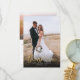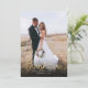 Élégant et simple modèle de remerciement de mariage carte 2 faces avec un texte de typographie lettrage manuel avec un cœur entre les mots. Ajoutez votre photo préférée à fond perdu sur le devant et une autre photo au dos avec un message par défaut au dos qui est modifiable.