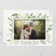 Cette carte de remerciement photo hydrangée blanche est parfaite pour envoyer une photo de vous à votre mariage et transmettre votre amour et merci à tous ceux qui vous ont soutenu dans votre voyage vers le mariage. Sa belle décoration est à la fois moderne et fantaisiste avec une verdure tonitruante et multicolore et des hydrangées bleues est parfait pour tout mariage de printemps ou d'été. Avec il est vierge de retour il ya beaucoup de place pour écrire des notes de remerciement personnelles, adorables à vos amis et votre famille. En quelques secondes, vous pouvez voir comment votre carte de remerciement va apparaître. Sélectionnez Personnalisez ce modèle, téléchargez une image préférée et entrez vos informations pour visualiser vos cartes uniques et magnifiques.