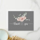 Cette carte de remerciement de mariage classique grise avec des roses florales roses est parfaite pour un mariage rustique. Le design présente d'élégantes roses poussiéreuses roses aquarelles et du feuillage vert, assemblés avec soin en de beaux bouquets sur un fond gris.