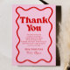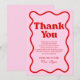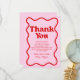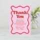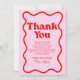 Ceci est une carte de remerciement pour une réception de mariage avec une bordure ondulée rose rouge rétro !
