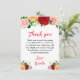 Carte De Remerciements Mariage Romantique aux Roses Rouges et Orange