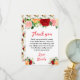 Cette belle et élégante carte de remerciement pour une fête de mariage prénuptial présente des roses aquarelles rouges, roses et orange avec du feuillage. Le texte combine une écriture manuscrite et des polices serif pour un look stylé et moderne. C'est parfait pour une fête de mariage rustique estivale.