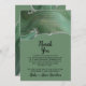 carte de remerciements mariage avec tourbillon vert agate et conception parties scintillant glissante sur un arrière - plan sage.