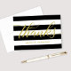 Carte De Remerciements Mariage Script Rayures Noires et Blanches de Marié