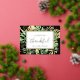 Ce carte de remerciements tropical moderne présente des palmiers verts et dorés, des philodendrons et des feuilles de fougères sur un arrière - plan noir. Un cadre élégant en feuille d'or met en évidence le texte en feuille sombre. Les plaques en feuille d'or accentuent ce design botanique exotique et apportent un peu de fantaisie sophistiquée à l'invitation. Le dos peut avoir un message personnalisé imprimé sur chaque carte ou peut être laissé vide pour permettre un message manuscrit par la mariée et le marié.