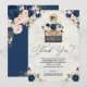 Carte De Remerciements Mariage Voyage Thème Fleurs Roses Et Bleu Marine