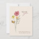 Simple Fleur sauvage rose jaune Mariage Carte de remerciements - Une douce et charmante carte de remerciements mariage ornée d'un bouquet fleur sauvage rose et jaune et d'un papillon flottant. L'élégant script "Merci" et la douce conception du dos fleuri ajoutent une touche de fantaisie et de grâce, ce qui en fait une belle façon d'express gratitude à vos invités mariages.