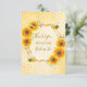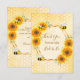 Une carte de remerciement pour une douche de mariée estivale. Tournesols aquarelles rustiques jaunes et orange sur un motif en nid d'abeille. Avec un cadre géométrique en faux or. Avec le texte : Merci et Mariée à l'abeille écrit avec un style de lettrage moderne à la main. Personnalisez et ajoutez le nom de la mariée. Lettres marron.
