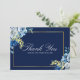 Carte De Remerciements Marine Blue Gold Floral Élégant Script blanc
