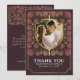Express votre gratitude avec le charme médiéval! Ces cartes de remerciement mariages présentent votre photo à l'intérieur d'un cadre en forme de bouclier, entouré de fleurs complexes contre un arrière - plan mauve. Une façon unique et élégante de dire "merci" à vos proches ! Personnalisez le texte, la police et les couleurs en fonction de vos préférences de conception. Objets correspondants dans notre boutique pour un thème de fête complet. REMARQUE : L'or présenté sur cet article n'est PAS du papier à papier.
