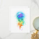 Grande méduse irisée, artistiquement dessinée, brillante, avec de longues tentacules sur le blanc, peinte sur l'arrière - plan multicolore. Méduse arc-en-ciel.