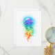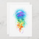 Grande méduse irisée, artistiquement dessinée, brillante, avec de longues tentacules sur le blanc, peinte sur l'arrière - plan multicolore. Méduse arc-en-ciel.
