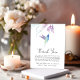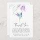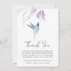 Un élégant carte de remerciements funéraire et commémoratif avec une aquarelle illustrant un colibri et des fleurs, et un "Merci" dans un script manuscrit. Personnalisez votre message de remerciement et le nom de l'être aimé, ainsi que les dates de naissance et de décès.