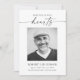 Express votre gratitude et votre reconnaissance à ceux qui ont montré leur soutien pendant une période difficile avec notre mémorial funéraire pour toujours dans nos coeurs Carte de remerciements de sympathie. Cette carte chaleureuse présente un design moderne et élégant, avec les mots "Forever In Our Hearts" comme un rappel de l'impact durable de la mémoire de votre être aimé. La photo personnalisable vous permet de personnaliser la carte avec une image chère qui capture l'essence de votre être aimé. Le design minimaliste apporte une touche de simplicité et de sophistication, tandis que le message personnalisé à l'intérieur vous permet d'express vos remerciements selon vos propres mots. Cette carte de remerciements de compassion est une façon réfléchie et significative de montrer votre reconnaissance à la famille, aux amis et aux collègues qui ont offert leurs condoléances et leur soutien. Nos cartes de remerciements personnalisées pour votre service de photographie sont une belle façon d'express votre gratitude et d'honorer la mémoire de votre être cher.