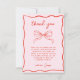 Send a festive note of gratitude with this Merry Little Baby Shower thank you card, featuring a hand drawn bow, soft pink and red accents, and elegant holiday details. Perfect for a winter baby shower or Christmas celebration, this design adds a touch of seasonal charm to your stationery suite. Complements the Merry Little Baby collection for a coordinated holiday look.