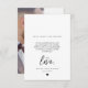 Une touche moderne sur l'élégance avec notre carte de remerciements photo mariage unique. Comprend un script moderne et des lettres classiques. Le message pré-écrit peut être modifié pour refléter votre propre note de remerciement significative pour vos invités.