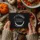 Créez un logo de cercle minimaliste avec des messages de remerciement arrondis pour votre petite entreprise. Vous pouvez customiser la couleur noire arrière - plan solide. Il y a de la place à l'arrière pour plus d'informations.