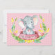 Mignon bébé éléphant fille rose et gris carte de remerciement