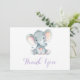 Carte De Remerciements Mignon bébé éléphant fille violet et gris