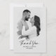 Célébrez l'amour et la joie de votre journée spéciale avec cette carte de remerciement chaleureuse dans une palette noire et blanche. Doté de deux photos chères et d’un libellé personnel et chaleureux, c’est une belle façon d’express de la gratitude envers la famille et les amis pour leur présence, leur soutien et leurs cadeaux réfléchis. Un souvenir intemporel qui honore les souvenirs que vous avez faits ensemble.