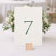 A clean and elegant wedding table number card featuring a minimalist design and soft sage green typography. Perfect for modern, romantic, and minimalist weddings, this table number blends beautifully with neutral, dusty blue, and sage green table settings.